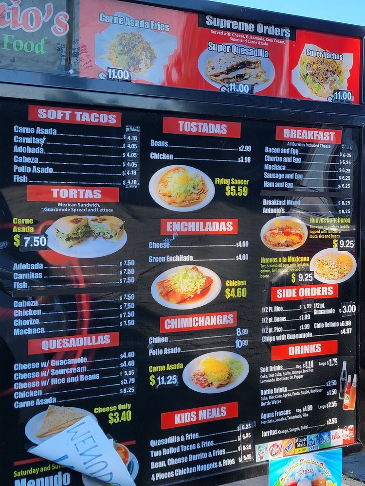Antonio's Mexican Food Menu